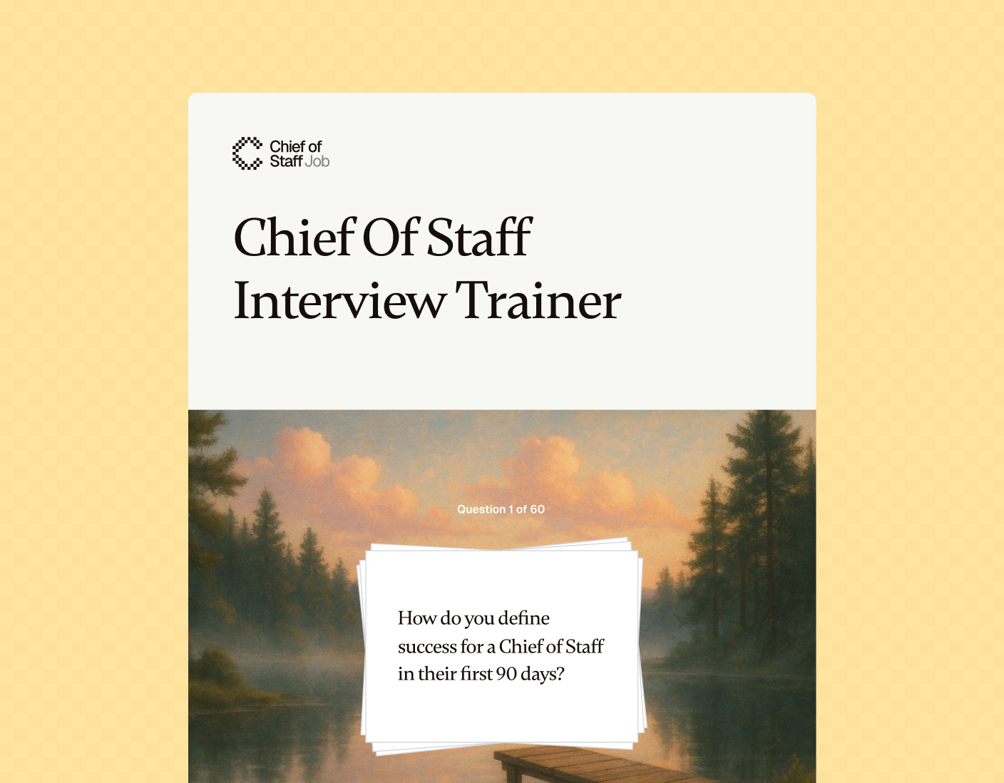 A comprehensive training guide with real-world interview questions, strategic frameworks, and practical scenarios to help you prepare, perform, and secure a Chief of Staff role.